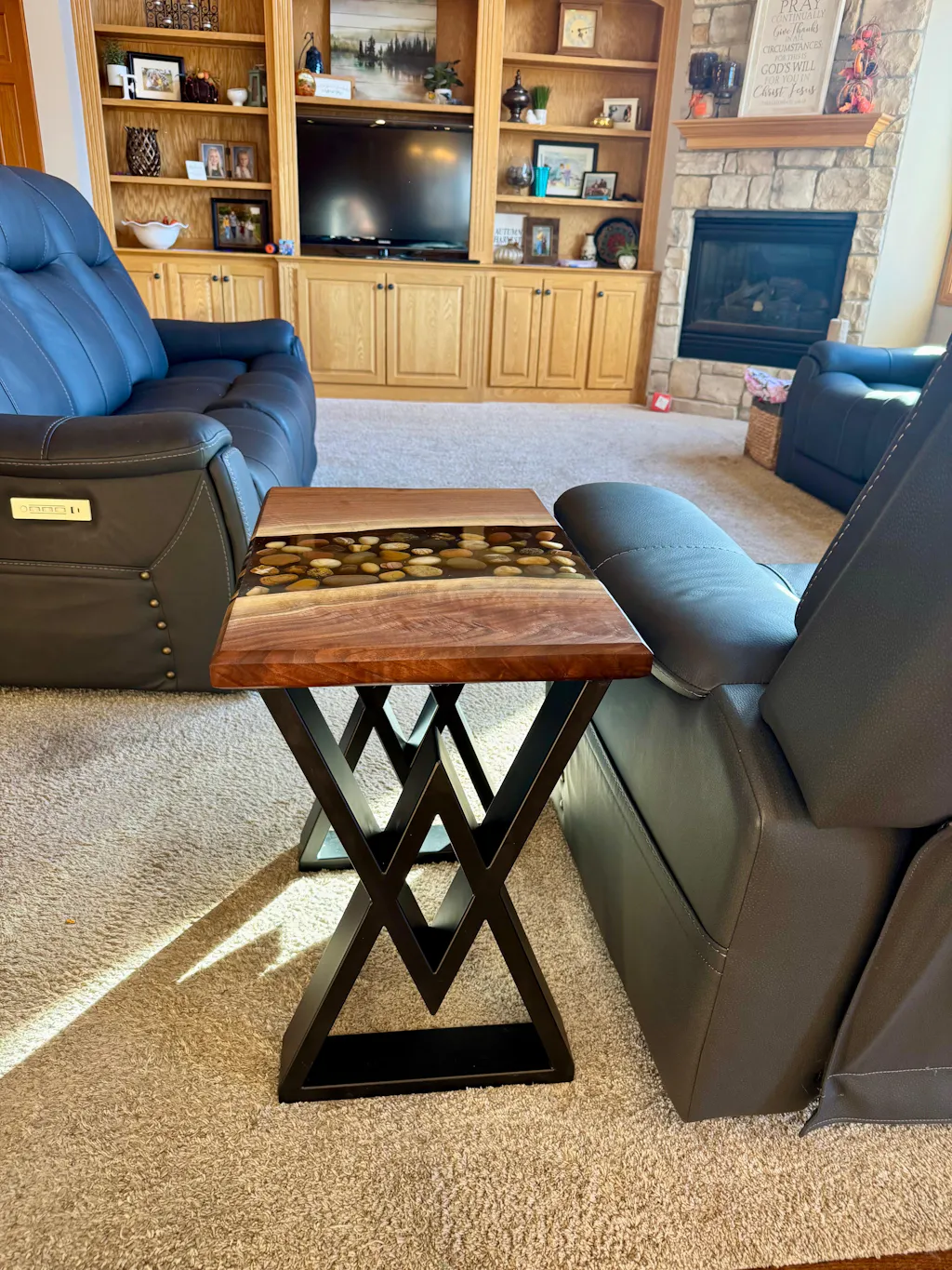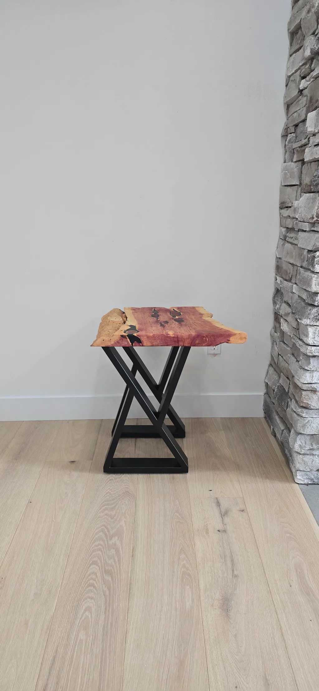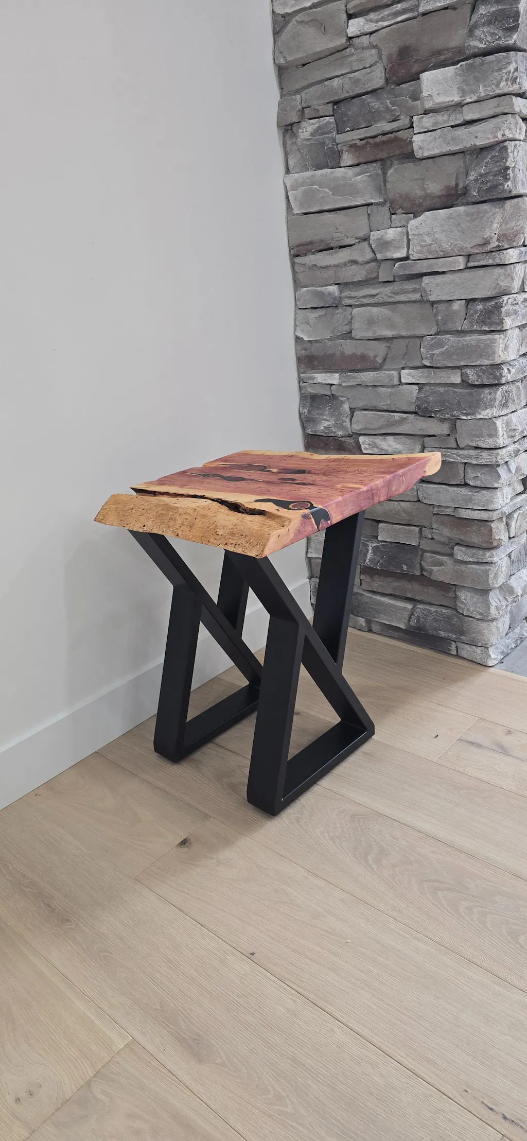 We’re very happy with our live-edge console table for behind the couch in our newly renovated & finished basement. Great customer service and the table arrived quickly, well packaged and it was easy to assemble. The table is very high quality (thick walnut) with unique character. I highly recommend fractal designs.